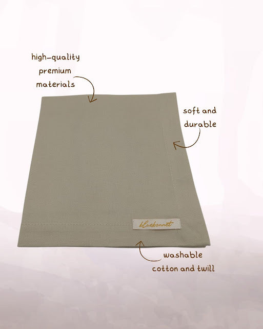 Our Table Settings and Napkings are made of high quality Cotton and Twirl fabric that you can mashine wash (no bleach) and tumble dry low.