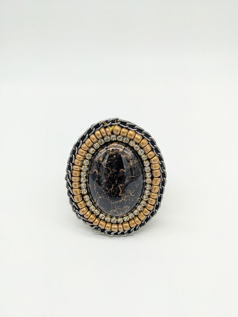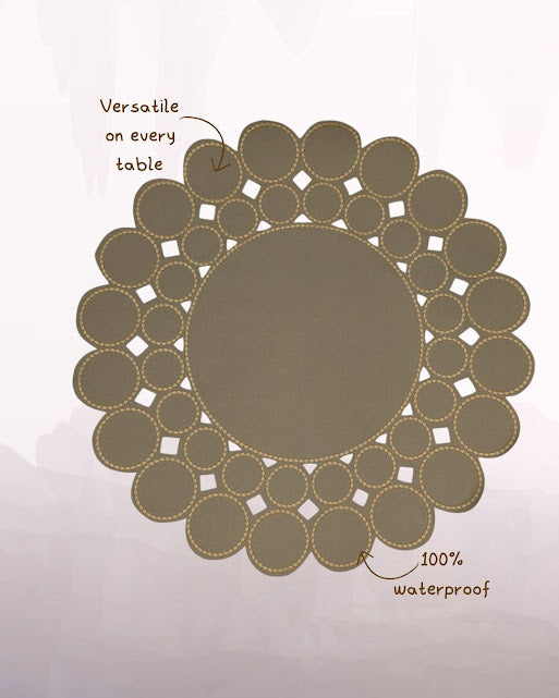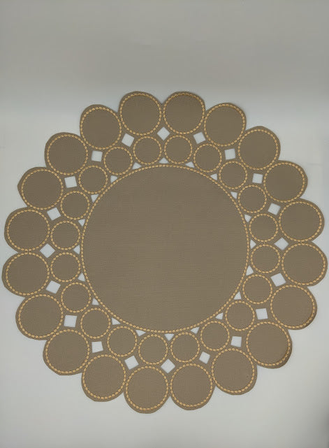 Design: Stunning embroidered and rounded placemat in dark beige.