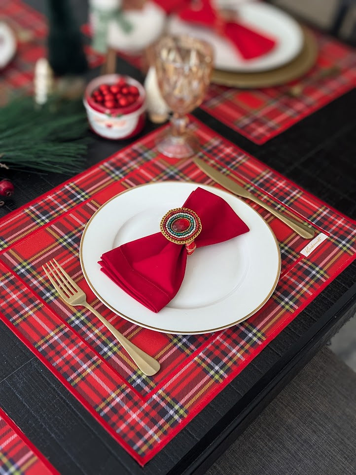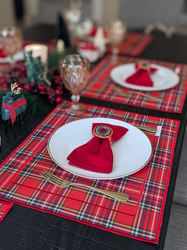 Tablet Setting Kit: A table setting kit includes one charger plate cover (or one placemat), one matching napkin and one napkin ring. If you have 4 people in your family, you should buy 4 kits. One for each person.