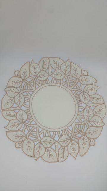Design: Stunning Richelieu lace in beige all around the edge of the off white placemat
