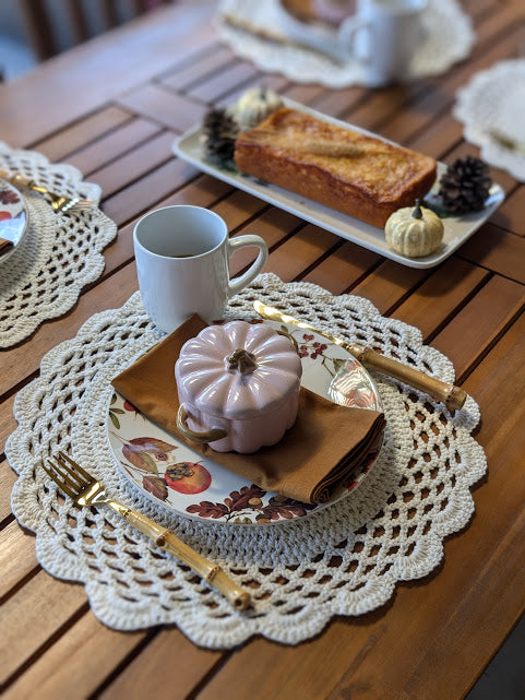 Upgrade your dining experience with our handmade crochet placemats. Not only will they add a charming touch to your table, but they're also practical and easy to care for. Order now and start enjoying the beauty and convenience of our crochet placemats!